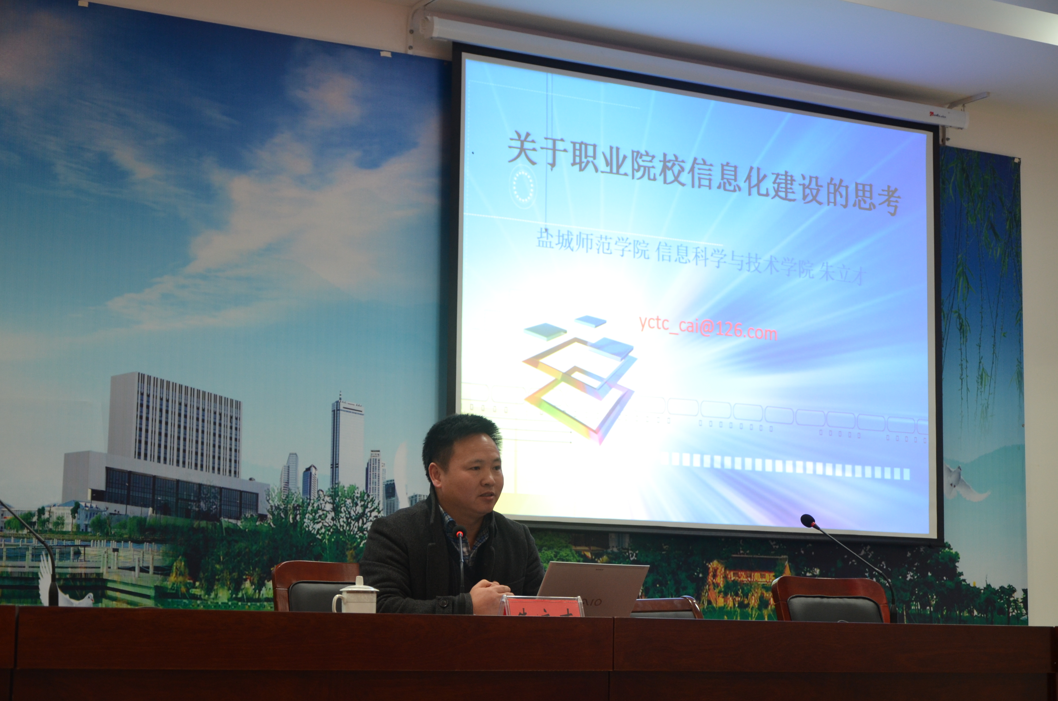 12月17日下午4:00,我校举行数字化校园建设项目专题培训讲座,培训讲座由学校许卫林副校长主持,盐城师范学院信息盐城师范学院信息科学与技术学院朱立才副院长主讲,沿海校区的全体教师参会听取了讲座。