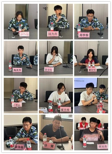 座谈会上,来自电子信息系的程紫煌、崔饶福、徐黉、黄旭尧,智能控制系的朱佑麟、谭恩博、练佳成、王琪玮,现代服务系的开梓欣、丁雨婷、李盛,综合高中部的丁乙、陆为舟、周李振、陶良伟,职业中专部的黄佳钰、曹欣怡、仇思淼、崔元桂等同学围绕军训学习、校园生活以及对学校的初始印象等方面畅所欲言,表达了对未来的校园学习生活的期待和信心。