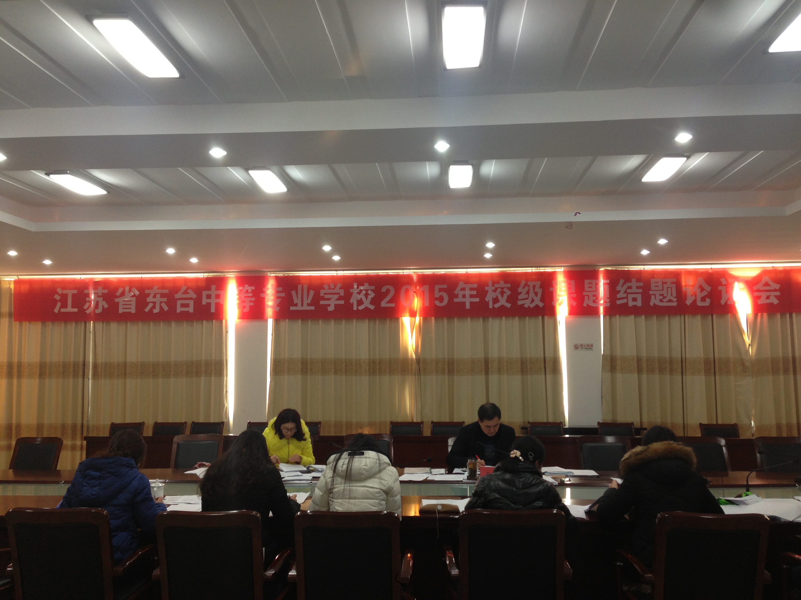 1月13日下午, 2015年校级课题结题论证会按专业组和文化组分别在学校西会议室、党员活动室召开。学校虞静东校长及校课题研究管理委员会成员、各相关学科教研组组长作为论证会评议专家出席了会议。