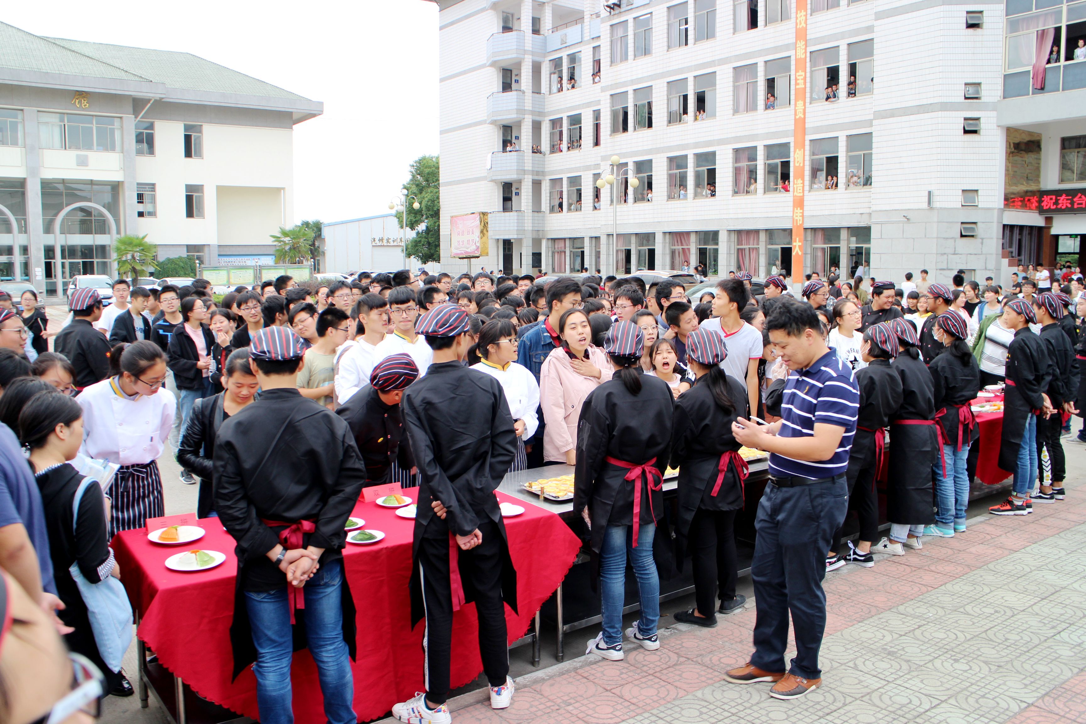 9月29日下午,江苏联合职业技术学院东台分院(东台中专校)台城校区教学楼前广场上人头攒动,热闹非凡,原来是该校17级烹饪专业学生为了迎接国庆节而隆重举办的技能学习阶段性成果展示暨“与食俱进”美食社团成立仪式。