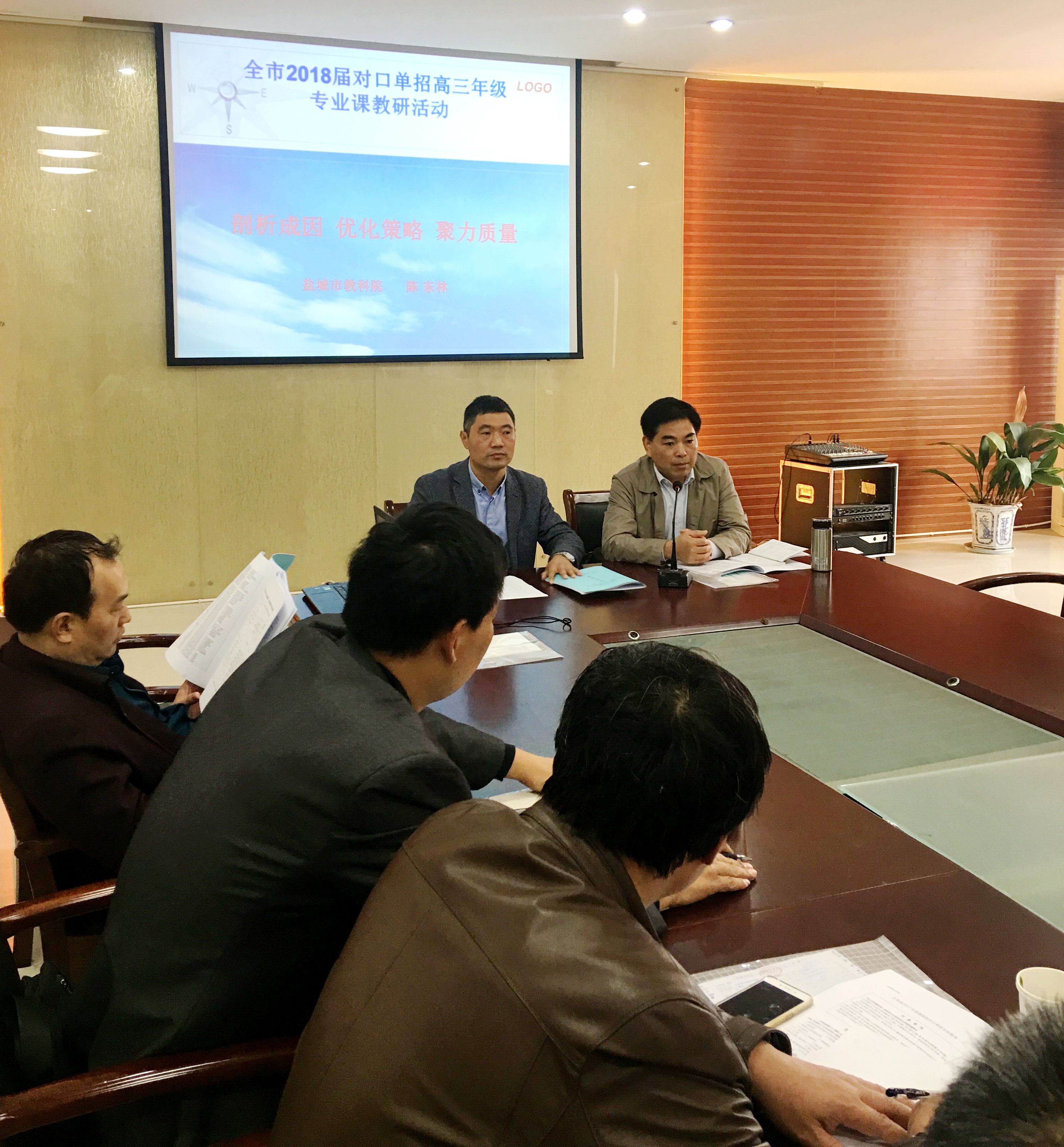 盐城市教科院陈东林主任在研讨会上全面介绍了2017年全省综合高中高三年级各专业目前的教学情况,以及近年来全省各职业学校对口高考的成绩分析,他指出,在当前的严峻形势下,盐城市各职业学校必须要牢固树立“比一比、找差距、树标杆”的思想,理清思路,明确任务,努力查找存在问题,积极作出改进,面对困难,要迎头赶上,努力克服,争取在2018年对口单招中取得优异成绩。同时,他还客观分析了目前盐城市各职业学校综合高中的总体情况和各专业目前的成绩状况,并做出了归因分析和教学建议。此外,他还就成立盐城市职业学校综合高中各专业教研核心组及这次活动议程作出了明确部署、提出了具体要求。最后,陈东林主任代表盐城市教科院宣读了全市综合高中高三年级烹饪和建筑专业教研核心组成员名单,江苏联合职业技术学院东台分院的何永庆老师担任了建筑专业教研核心组组长。